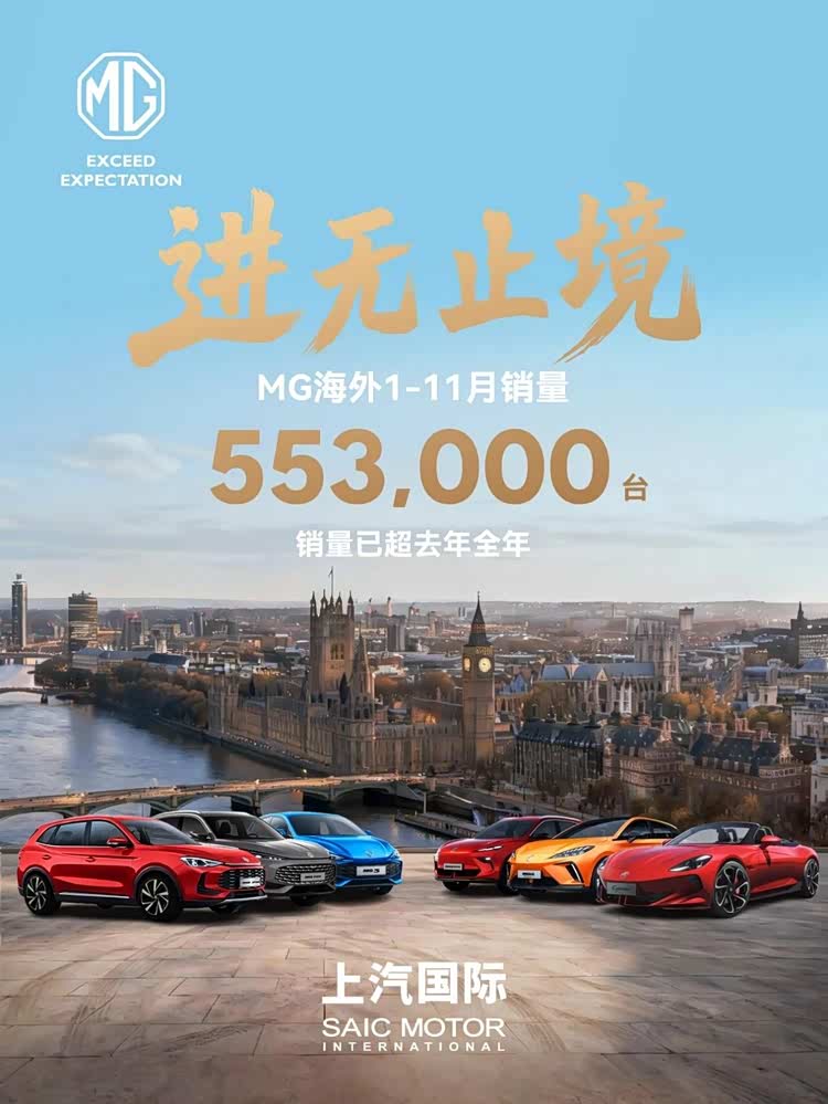 与此同时,MG在海外市场早已是“销量标杆”。1-11月,MG海外总销量突破55万台,其中欧英市场销量突破30万台,成为中国车企海外首个30万辆级单一市场。更值得一提的是,全新MG4通过了业内最权威、标准最严苛的2025欧盟E-NCAP碰撞测试,斩获五星安全评级,用硬实力赢得了全球最挑剔市场的尊重,这不仅是MG历史底蕴和科技创新的结果,更生动诠释了何为现代意义上的“中国力量”:它不再是单向的输出,而是以中国市场的创新实践为基石,反哺全球市场,形成一个良性循环的全球化体系。MG,正是这一模式的先行者。
