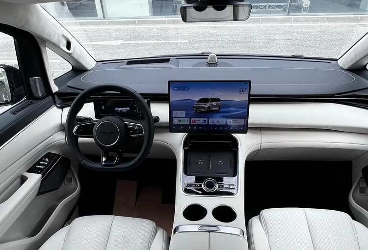 内饰呈现出三层环抱式风格,悬浮式大屏、矩形仪表屏配合19.8英寸AR-HUD抬头显示,营造出科技氛围,并搭载高通骁龙8295P芯片加持的Flyme Auto 2.0车机系统。而大量皮质包覆,配合/麂皮顶棚以及环绕式氛围灯,继续强调高级感。此外还将配备三幅式多功能方向盘+电子怀挡、镂空副仪表台、双50W手机无线快充、物理按键+水晶旋钮、中置扬声器等,也进一步提升档次感。