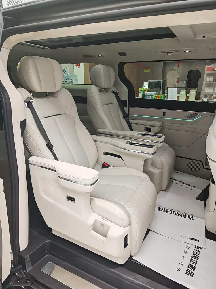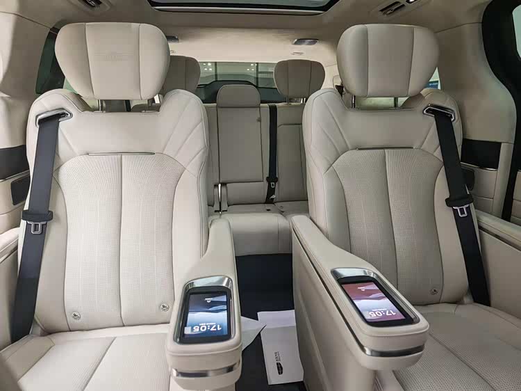 车内除7座布局外,还将提供2+2+2式6座、2+2+2+2式8座布局可选。二排双零重力座椅配备扶手屏,并支持电调/通风/加热/按摩等功能,再配合吸顶娱乐屏、折叠小桌板、智能冷暖箱、27扬Flyme Sound无界之声音响、全景天幕+遮阳帘等,乘坐舒适性不言而喻。另外7座车型第三排靠背支持137°可调,6/8座车型第三排独立座椅可180°躺平,而8座车型第三排座椅后翻还可观海揽景