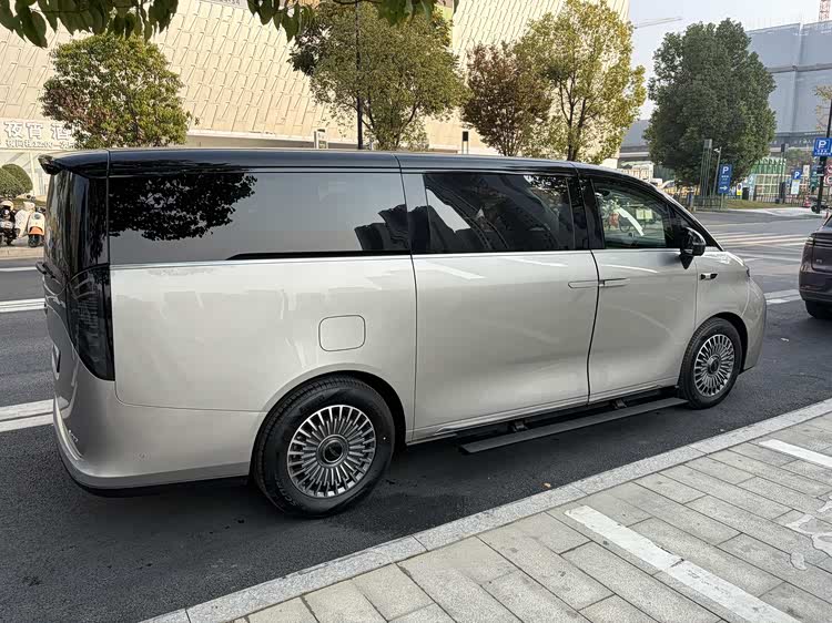 车身尺寸长宽高分别为5360/1998/1940mm,轴距3200mm,相比岚图梦想家还要大。车身侧面采用方正饱满的游艇姿态,并提供星瀚银、深空蓝、月曜白、曜夜黑、极光绿五种配色可选,加之双色车身、电动侧滑门、电动踏板以及20英寸“曜日”密幅式轮毂等,进一步提升了豪华尊贵气息。而隐藏式门把手、“展翼”式贯穿尾灯的加持,又带来了时尚属性,并配备24K曜金天马尾标。