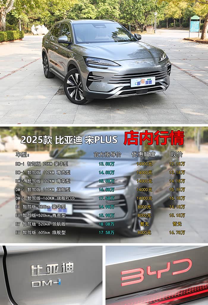 《郝车来袭》原创导购:近日,郝哥了解到,比亚迪宋PLUS或将停产,自此在海洋网售卖的唯一的王朝车型也将退出历史舞台,或许为了清库存,又或许为了抢占新能源免购置税市场的最后冲刺,总之目前新车已拥有十分可观的优惠力度。具体来说,2025款宋PLUS共分为五款DM-i混动和四款EV纯电共计九款车型,售价区间为13.58万~18.08万元。不过,根据郝哥暗访北京地区某比亚迪4S店得知,DM-i全系优惠14000元,EV版本则除顶配以外全系直降8000元,那么最终该选择哪款配置才最划算呢?最终落地价得多少钱?养车成本又如何呢?