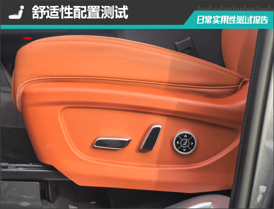 座椅方面,评测车前排座椅调节按键位于座垫侧面,位置合理且操作方便,均配备了电动座椅记忆功能。座椅舒适功能上,评测车主驾驶座椅提供加热、通风、按摩功能;副驾驶座椅提供加热、通风功能,可以提供不错的乘坐舒适性。