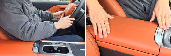前排中央扶手箱采用对开式设计,造型规整且面积宽大,表面为软性材质包裹,触感舒适。驾驶者在驾驶过程中,可以为手肘提供有效支撑。