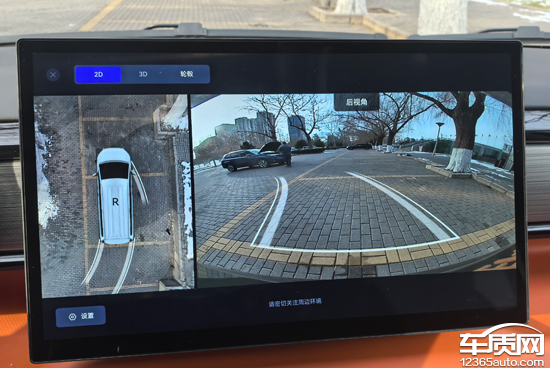 评测车配备了360度全景影像,可以多角度查看,方便驾驶员了解车辆周边情况。经实测,整体画质清晰且无畸变,整体表现达到行业主流水平,可以在日常泊车过程中给驾驶者提供帮助。