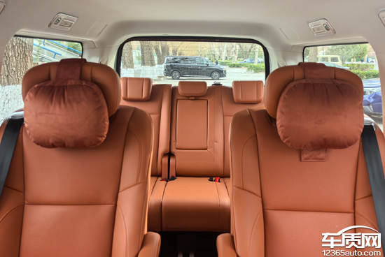 评测车采用7座布局,第二排和第三排座椅配备独立头枕且均支持上下调节,头枕内部填充比较柔软,舒适性表现较好,不足之处是第三排中间头枕尺寸较小。