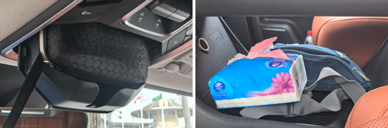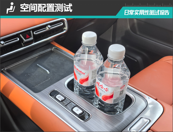经过实测,所有固定物品均有合适的储物空间进行摆放,并且位置设计比较合理,拿放物品方便。同时,评测车中控台下方的储物槽空间较大,进一步提升了实用性。