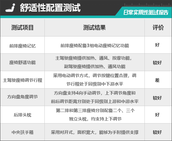 在主驾驶座椅测试中,评测车的驾驶座椅最前端和最末端之间的距离为220mm,处于同级别中下游水平,座椅可调节行程有待优化。