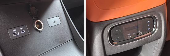 评测车共配备9个USB接口,其中,前排配备1个USB Type-A接口和2个USB Type-C接口;第二排配备1个USB Type-A接口和1个USB Type-C接口;第三排配备2个USB Type-A接口和2个USB Type-C接口。接口数量众多且种类丰富。同时,车内还有1个12V电源接口,能够满足车内乘客电子设备的用电需求。