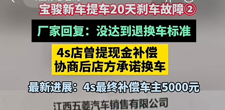 在车主与经销商的协商过程中,店方一度承诺换车,但最新进展显示,最终解决方案是4S店向车主提供5000元补偿。