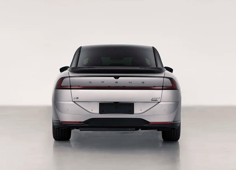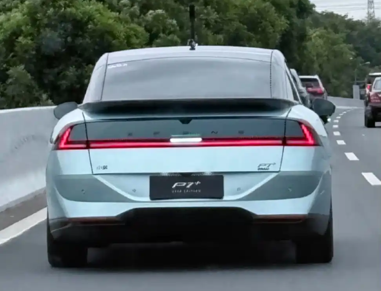 车尾依旧采用贯穿式尾灯结构,这是P7家族的重要识别特征之一。但在增程版车型上,尾灯内部结构与灯腔样式均有所变化,点亮后的视觉宽度更集中于车尾中轴线,有助于提升夜间识别度。后包围区域进行了重新设计,取消了以往较为突出的装饰元素,改为与车身同色的整体式结构,这种处理方式在视觉上降低了尾部复杂度。后车窗上方的小鸭尾造型被保留下来,其主要作用仍然是对高速行驶时的气流进行引导,而非单纯装饰。值得注意的是,尾灯中央区域新增了辅助驾驶状态指示灯,这一“小蓝灯”的加入,更多承担信息传递功能,用于提示车辆当前的辅助驾驶状态,对周围交通参与者形成明确反馈。