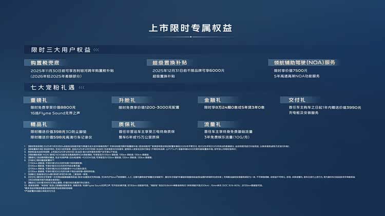 首先是价格与权益的诚意。9.58万元起的限时指导价,配合价值6000元的超级置换补贴、7500元的领航辅助驾驶NOA服务及购置税兜底政策,叠加12月31日前下定可享的舒享配置免费升级、8万24期0息等七重礼遇,实际购车成本进一步下探。更关键的是“入门即高配”的设定,四大版型覆盖130km至200km纯电续航需求,让用户无需为基础配置多花冤枉钱。对于预算10万左右的家庭用户来说,这样的定价策略精准切中了“高质优价”的核心需求。