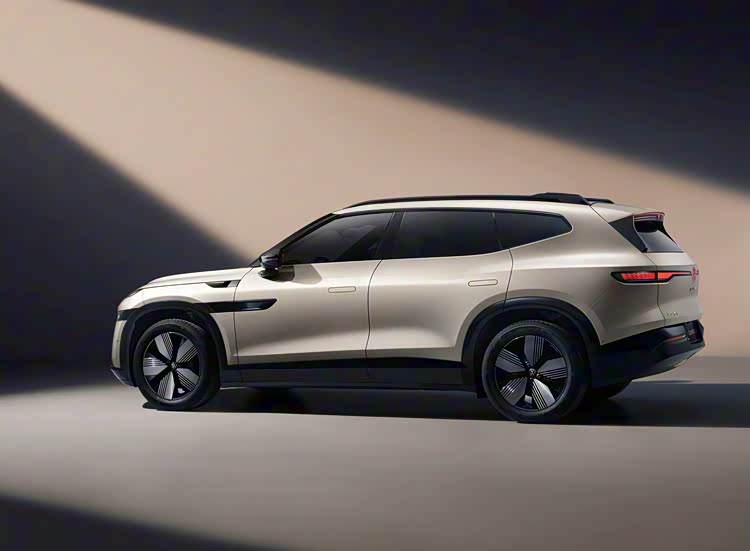 侧面造型方面,车顶略带一点弧度,配备有行李架,有着一定的力量感;腰线采用了分段式设计,点缀出了车身侧面的层次感;门把手则是弹出式设计,能够起到降低风阻的作用;轮眉和侧裙部分设计有粗壮的黑色饰板,进一步增强了力量感,轮毂则是五辐式造型,风格足够大气。