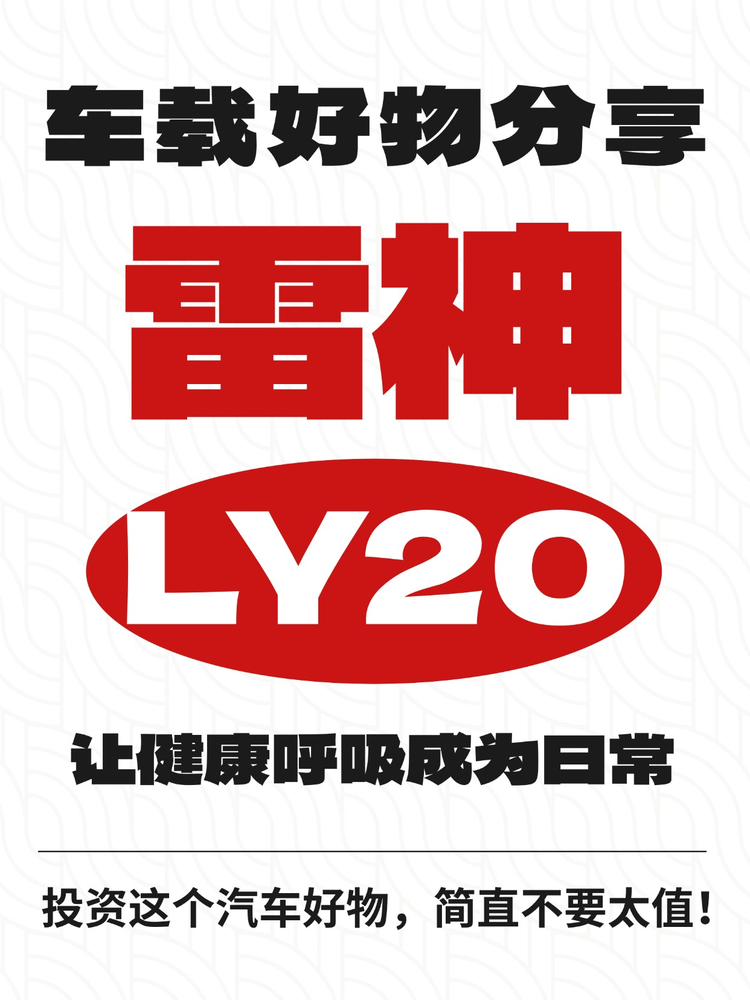 总之,这台雷神 LY20 车载空气消毒机真的是我今年挖到的「车载好物推荐天花板」!没有复杂操作,插上车就能用,把新车味、甲醛、细菌病毒全拿捏,还能释放负氧离子,让每一次开车都变成沉浸式吸氧体验~ 不管是自己用还是送刚提车的朋友,都是超实用的健康投资!鼻炎党、有娃家庭、养宠姐妹真的可以闭眼冲,早入手早摆脱车内异味和过敏困扰,让每一次出行都安心又治愈~