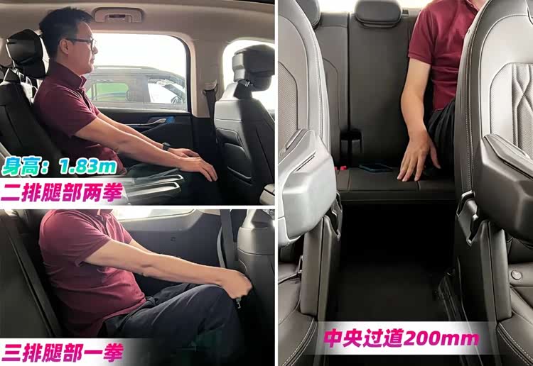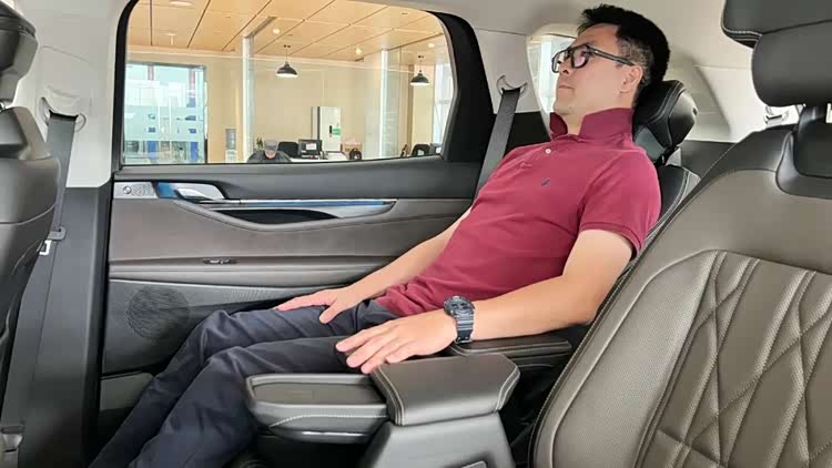 我个人喜欢2-2-3的布局,中排座椅宽大舒服,而且扶手还能收纳可腾出200mm的过道。当然,二排座椅少不了零重力模式,通风、加热功能也不在话下。第三排我试了试,也是十分宽敞,要知道我身高是1.83m。