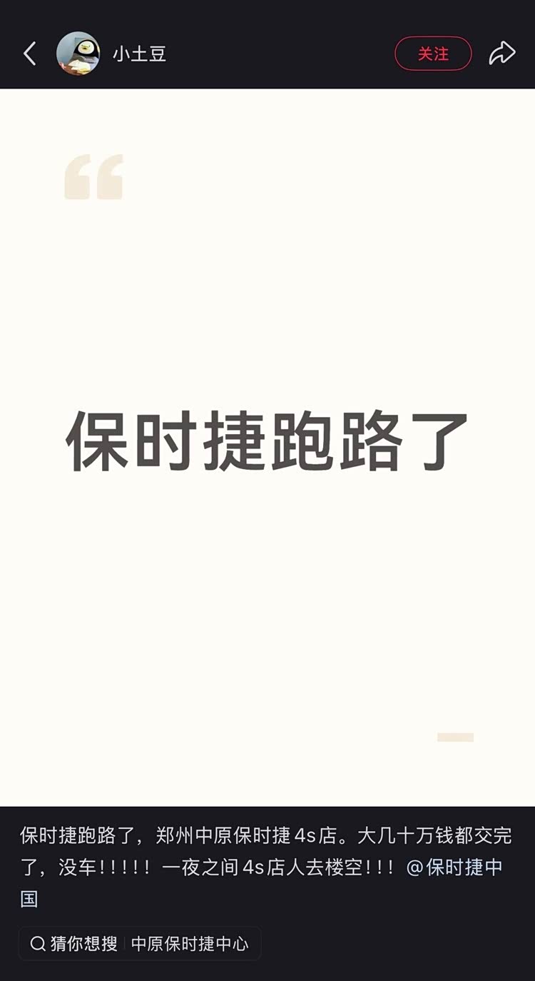 保时捷4S店突然跑路?有人刚支付20万定金