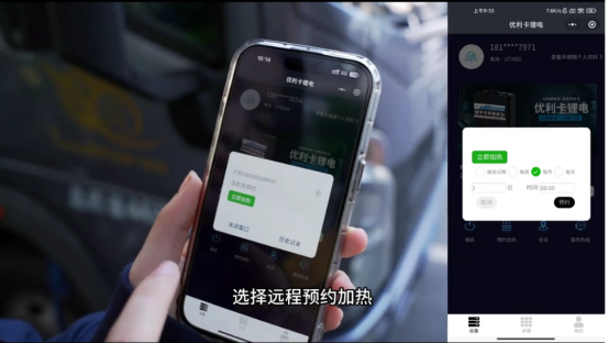优利卡锂电支持远程预约加热功能,让您在寒冷的清晨无需等待,即可直接进入温暖的车厢,享受即刻出发的便捷。