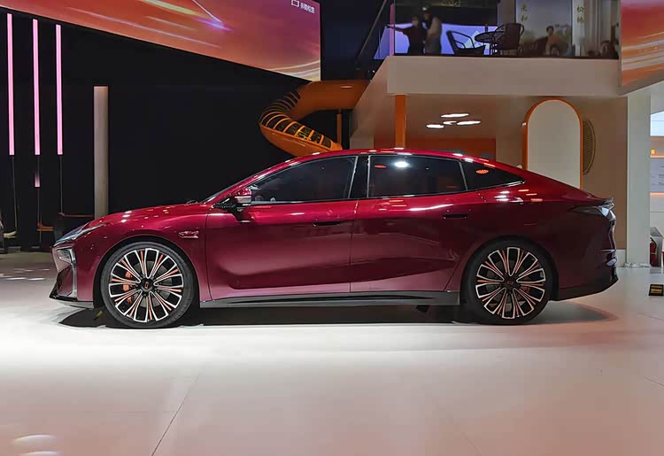 车辆的侧面采用了轿跑式设计,整体线条流畅,车窗采用了无框式结构,车门把手是半隐藏式的,多幅式的轮毂造型非常有张力。在尺寸上,这款新车的长度、宽度和高度分别是4920/1920/1475mm,而其轴距达到了2900mm。