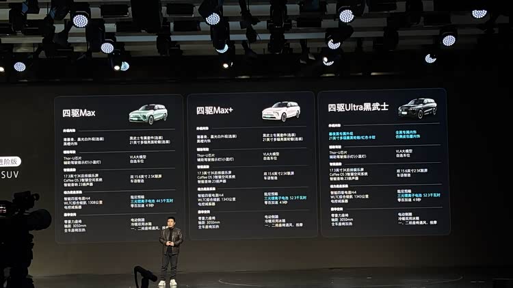 仔细查看配置表可以发现,入门四驱Max版其实已涵盖本次体验的大部分核心功能:Thor-u芯片、VLA大模型、智能四驱电混Hi4、电控减震器、阻尼预瞄都没有缺席,舒适性配置也已经够用。