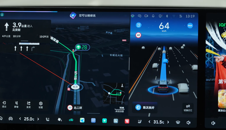 1. 支持语音发布指令。不管是开启/关闭NOA,调节车速或跟车距离,还是语音变道,它都能胜任。并且,指令下达后识别速度快、执行力高,这就保证了较高的通行效率。体验下来后,作为一个日常用车中对智能驾驶辅助依赖程度很低的司机来说,我也很愿意去使用它。