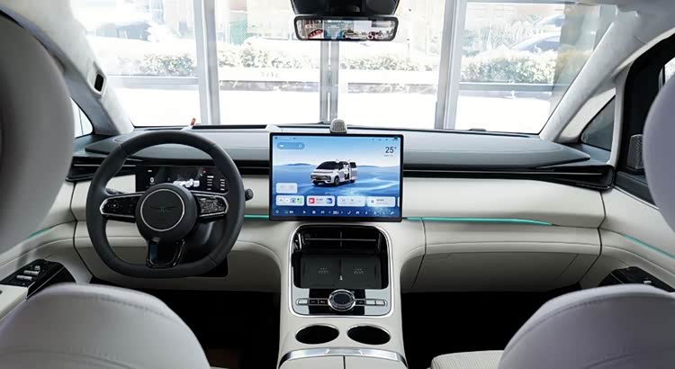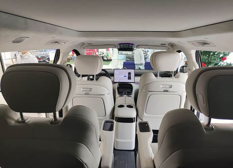 目光移至车内,新车内饰基本延续了吉利银河家族式的T字型设计风格。而其车内配备的悬浮式全液晶仪表与中控屏,结合大量皮质包裹的铺陈结构,则兼具了科技感与豪华质感。此外,银河V900还将配备高通骁龙8295P芯片加持的FlymeAuto 2.0车机系统以及由包含激光雷达等硬件与千里浩瀚H5方案组成的高阶智能辅助驾驶系统。