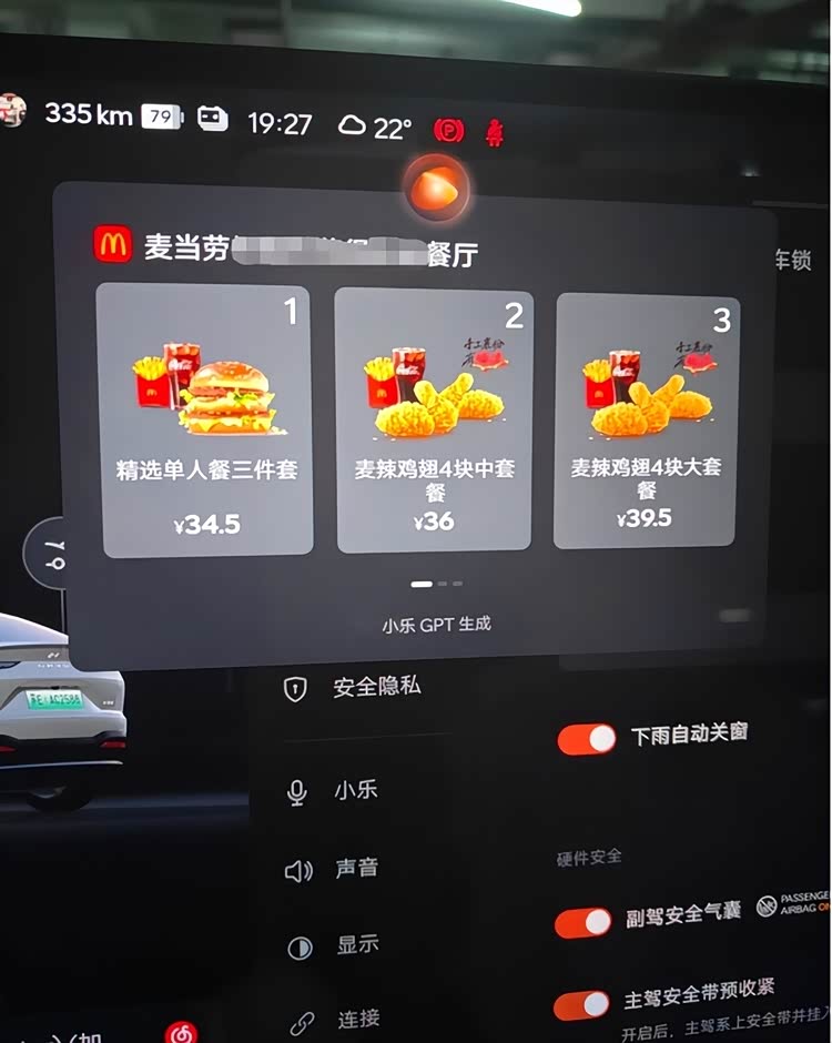 值得关注的是,此次更新还强化了智能服务体验,在原有麦当劳点餐功能基础上新增肯德基智慧点餐,依托“小乐GPT”的自然语言理解能力,支持套餐组合、优惠匹配等个性化需求,配合车速取、沿街取服务,实现不下车即取即走。这些功能迭代虽非核心智驾范畴,却从用户日常出行场景出发,进一步完善了智能出行生态,也让乐道的产品智能体验稳居行业第一梯队。