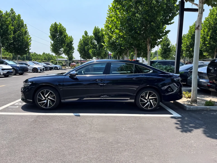 外观还是熟悉的德系商务范儿,延续了现款的设计语言。窄幅熏黑中网和IQ.Light矩阵大灯连为一体,再配上贯穿式LED灯带和发光的VW车标,晚上点亮后辨识度直接拉满,高级感十足。车尾的超宽带贯穿式尾灯也很有看点,里面藏着128颗LED模块,灯光效果细腻又精致。顶配车型还配备了19英寸双色轮辋,给沉稳的气质里添了几分运动感。