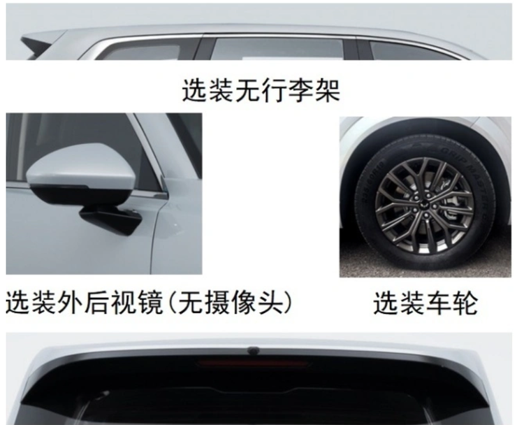 实车到底会是怎样的布局和设计也为消费者埋下了伏笔。但从申报信息可以看到,五菱星光L的轮毂样子也支持选择,应该会备用几套方案,后视镜采用双色搭配,但没有摄像头加持,可以预判到360°影像需要选装,包括尾部的翼子板也带有摄像头,后置摄像头或许也要选装。但是很遗憾,它取消了车顶行李架,对于喜欢户外自驾游的朋友来说,可能比较遗憾,没有车顶行李架始终没有那么便利。那尺寸为4980*1930*1760毫米,轴距为2950毫米,数据参数还不错,至少比瑞虎9更大,即便6座布局也能保证第三排的空间。而且轮毂尺寸来到20英寸,通过性还是不错的,使用轮毂规格为235,也是具有更好抓地力,而且五菱汽车的底盘调校很稳,相信五菱星光L跑高速也能带不一样的舒适度。