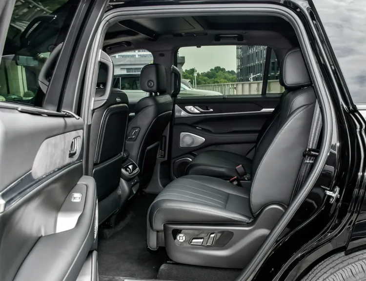 虽然是定位6座SUV,事实上它的坐姿和空间更像一台MPV车型,副驾驶带有老板键,也是采用零重力布局,功能与后排座椅相同,支持10点式按摩,支持腿托功能,支持纯平放倒,支持前后电动调节以及多向调节,更加灵活的空间布局也保证了第三排的乘坐空间。而且它前排带有小桌板、车顶带有17.3英寸的折叠娱乐屏和分段式全景天窗,并且车窗位置还有遮阳帘,在隐私和舒适方面做到兼容。而且很多功能很便利,前后排都有SUV接口和C型接口,车机也支持HUAWEI HiCar、Carlink、荣耀车联,内置23个扬声器,包括后备箱也带有扬声器,后备箱也设置一键放倒的按键,电动尾门、感应开启等电动化功能都能为生活场景带来便利性。