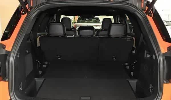 后备厢方面:福特探险者的第三排座椅支持电动升起放倒