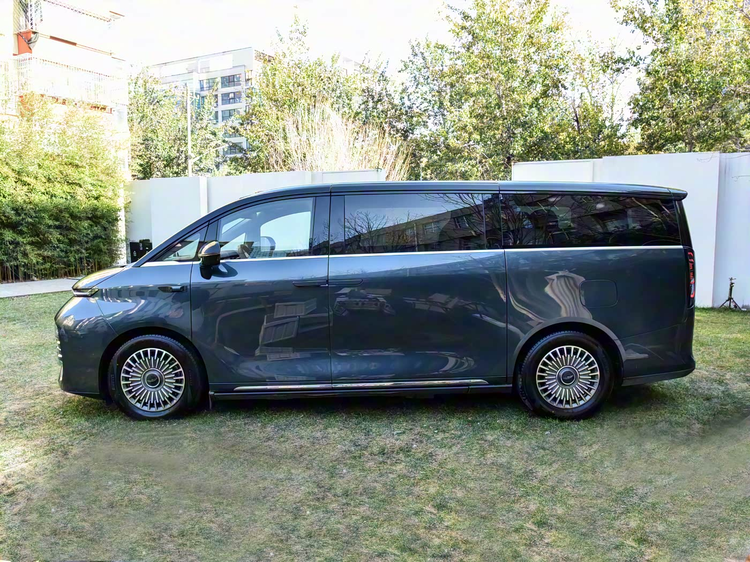吉利银河V900的车身非常魁梧,车顶线条比较平直,双色车身还营造出悬浮式车顶效果。贯穿式腰线搭配侧裙和轮眉部分的筋线,勾勒出一种陆地游艇姿态。同时,新车还配备了隐藏式门把手、电动侧滑门、电动踏板等配置,下方还搭配了20英寸多辐式造型轮毂,风格颇为大气。此外,新车还提供了月曜白、星瀚银、深空蓝、极光绿和曜夜黑等多种车色可选。