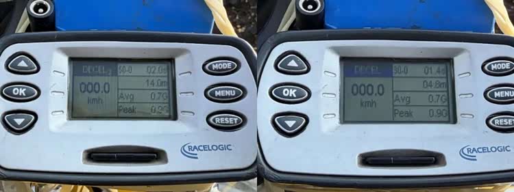可以看出两车虽然在参数,引擎上保持一致,但提速性能差异还是很明显的,尤其是60-70加速段,拉开了9.4秒的差距,主要还是CVT的传动效率,还是不及挡位的,好在最常用提速区间0-50差距不大,加之这种MINI边三轮提速性能本就不是重点,好骑好看才是重点,而CVT带来了更便捷的操作,利大于弊。摩托财智这套CVT设定的起步转速在2000转左右,贴合日常的驾驶需求,但动力真正开始涌现得到4000转左右,进行大油门加速时,车辆也没有明显的加速感,属于平顺,可控的动力输出,在封闭路段测得鲸150CVT的GPS极速为74.8km/h,这对一辆整备质量203公斤的150挎子,这个动力日常玩乐、城市通勤基本足够,但达不到充沛的级别,也不适宜上高速、快速路。