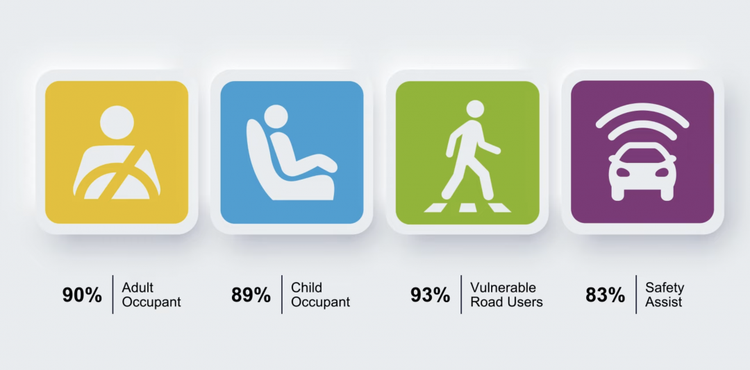 取得五星评级的,还有明年准备在中国推出的 梅赛德斯-奔驰 CLA,在成人保护方面拿下 94%,另外儿童保护 89%,行人防护 93%,这三项与其他受测车并列最高分,驾驶辅助 85%,则是这次 19 款车里最佳成绩。大众 T-ROC、保时捷 卡宴 也都取得五星评级。
