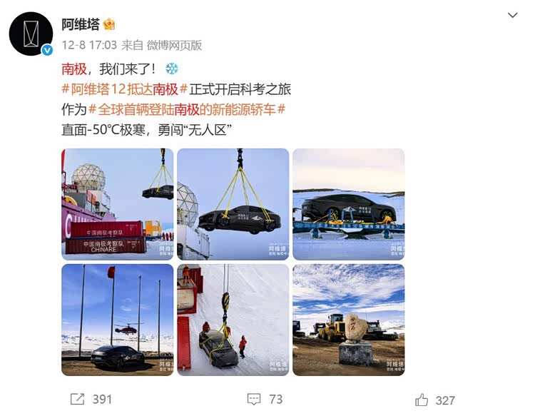 阿维塔近期的一则 “极限营销” 彻底火了,但火的原因并非预期中的品牌高光 —— 官方微博高调宣布旗下阿维塔 12 车型抵达南极中山站,完成 “-50℃极寒环境测试”,本想借 “极地挑战” 打造硬核产品形象,却被网友一眼戳穿核心漏洞:此刻南半球正处于盛夏,南极夏季的气温与 “极寒” 二字堪称风马牛不相及。