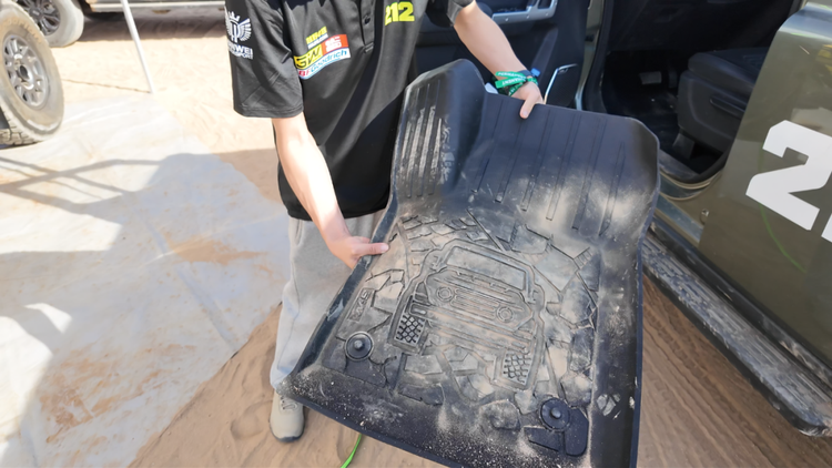 更懂越野需求的凹槽设计,能瞬间锁住沙粒、泥浆与积水,避免污渍扩散污染内饰,回到营地后仅需清水一冲便能快速洁净,让后勤团队节省更多精力专注赛事保障。