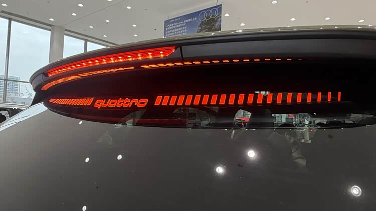 3、 全系Quattro肯定是卖点,但奥迪把这个标识,做成了尾部高位刹车灯的投影,这个细节我也很喜欢。在刹车点亮的时候,新款车型尤其在夜晚,从尾部来看会感受到来自奥迪灯厂的自豪炫耀。