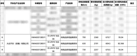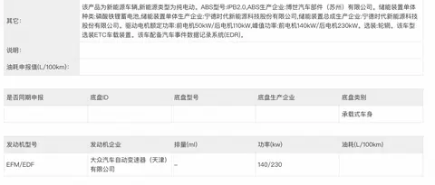 提供四驱与两驱,纯电续航最高730km:大众安徽 与众08(参数|询价)最新申报信息