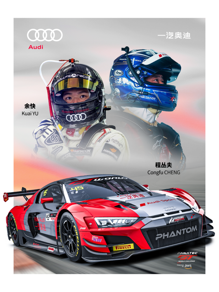 一汽-奥迪车队也运营着R8 LMS GT3赛车,活跃在区域顶级GT赛事的舞台,在2025年GTWCA的竞争中,一汽-奥迪车队同样是经验与活力并存的车手组合,程丛夫与余快携手收获了silver cup的年度冠军。