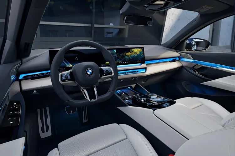旗舰级座舱设计思维在全新款 宝马 5 系列三厢豪华三厢车以及5系列Touring豪华旅行车上获得最完整的体现,座舱以悬浮式曲面屏幕为视觉核心,结合环抱车室的 宝马 座舱环绕光幕、顶级水晶中控套件、隐藏式冷气出风口与大幅简化的实体按键配置,构筑出简洁前卫且富含科技感的沉浸式数字座舱,全面诠释新一代豪华的设计语汇。
