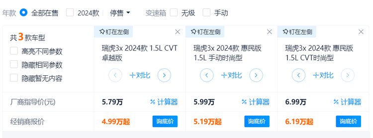车家号·0浏览·2025-12-26 16:07 · 山东作为奇瑞布局入门级市场的核心车型, 瑞虎3x(参数|询价)聚焦预算5-8万元的年轻首购用户与家庭代步需求。其5.79万-6.99万元的售价极具诚意,在同级别中形成“低价不低质”的核心优势,成为下沉市场与城市通勤的热门选择。