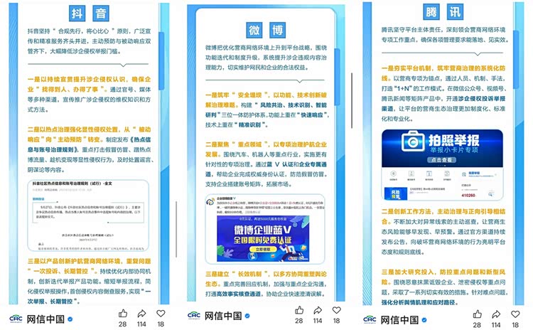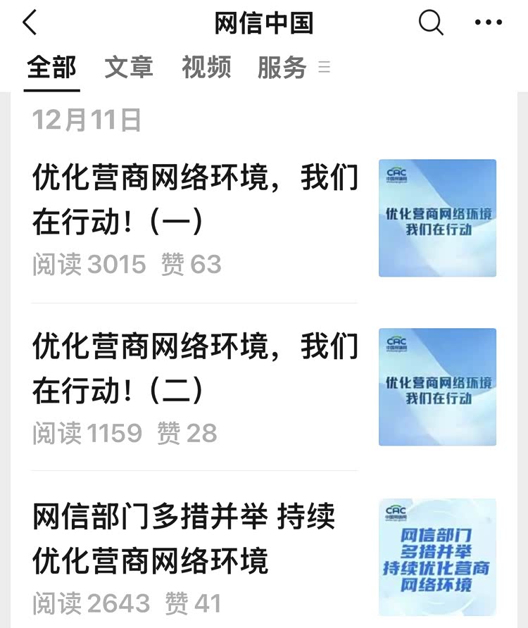 12月11日,网信部门连续发表了“优化营商网络环境,我们在行动”的相关内容,既包括各地网信相关部门做出了表态,也包括抖音、微博、腾讯在内的平台,也都纷纷进行了表态。