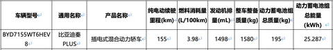 车家号·0浏览·2025-12-26 16:47 · 陕西日前自工信部获悉,比亚迪秦PLUS DM将推出新版本车型,与现款在售车型不同的是,该车型将会搭载更大容量的电池,纯电续航里程也会有所提升。从工信部消息来看,该车型将搭载容量为25.287kWh的电池组,纯电续航里程为155km(工况未知,预计为WLTC),燃油消耗量为3.98L/100km,发动机排量依旧为1.5L。