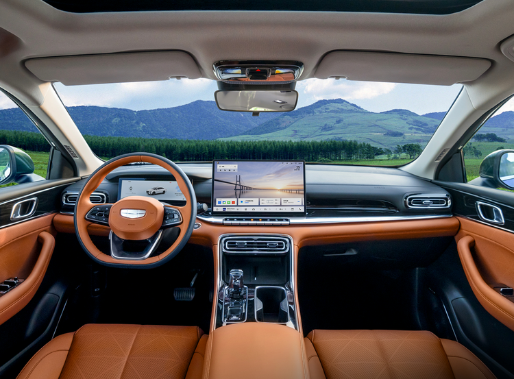 侧面迎合用户喜好配备了非隐藏式门把手,拥有硬朗的腰线对车身进行勾勒,尾部是吉利家族化设计的贯穿式尾灯,整车颜值还是比较高的,符合年轻人的审美需求。车长4806mm,轴距2756mm,车内配备有大尺寸悬浮式屏幕,还预留有手机无线充电面板,坐进车内很难想到这车起步价只要六万多。