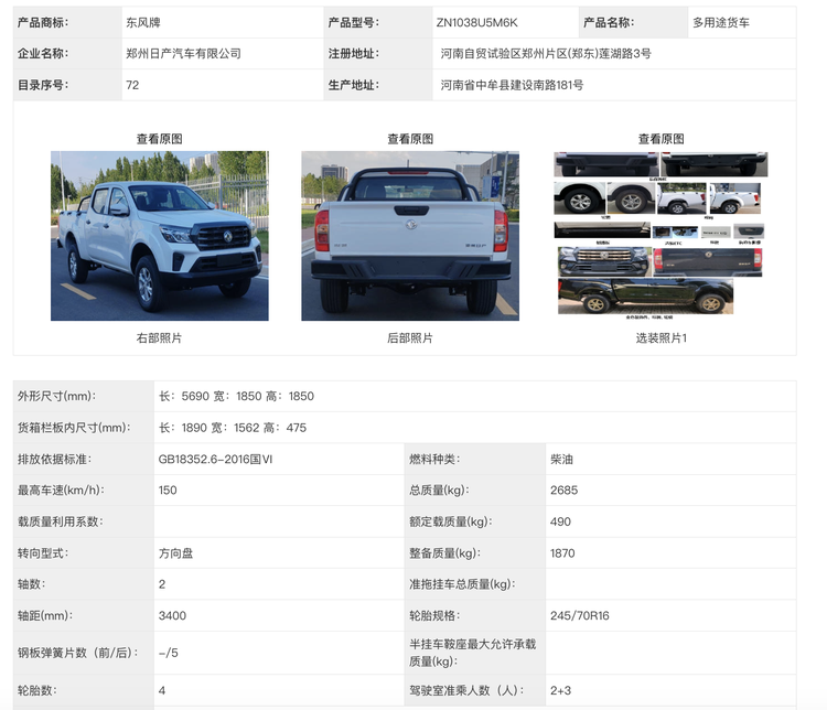 相比外观,更引发业内关注的是其“看不见”的变化。接近厂商人士透露,新款锐骐已出现在工信部公告中,核心升级集中在动力总成层面,搭载了M9T柴油发动机。这一技术路线与现款所采用的玉柴柴油发动机存在本质差异,被业内人士视为一次“心脏级”换代。有业内分析认为,M9T平台长期应用于日产全球多款车型,其技术目标并非单一参数拔高,而是围绕可靠性、燃油经济性、低速扭矩输出及排放合规进行系统优化。