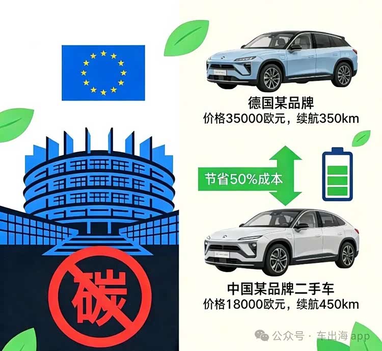 首要原因在于欧盟严苛的碳排放政策与本土新能源汽车的供给短板,为中国新能源二手车创造了绝佳的市场切入点。作为全球环保政策最严格的地区之一,欧盟不断收紧碳排放法规,对燃油车的限制日趋严格,倒逼市场加速向新能源转型。