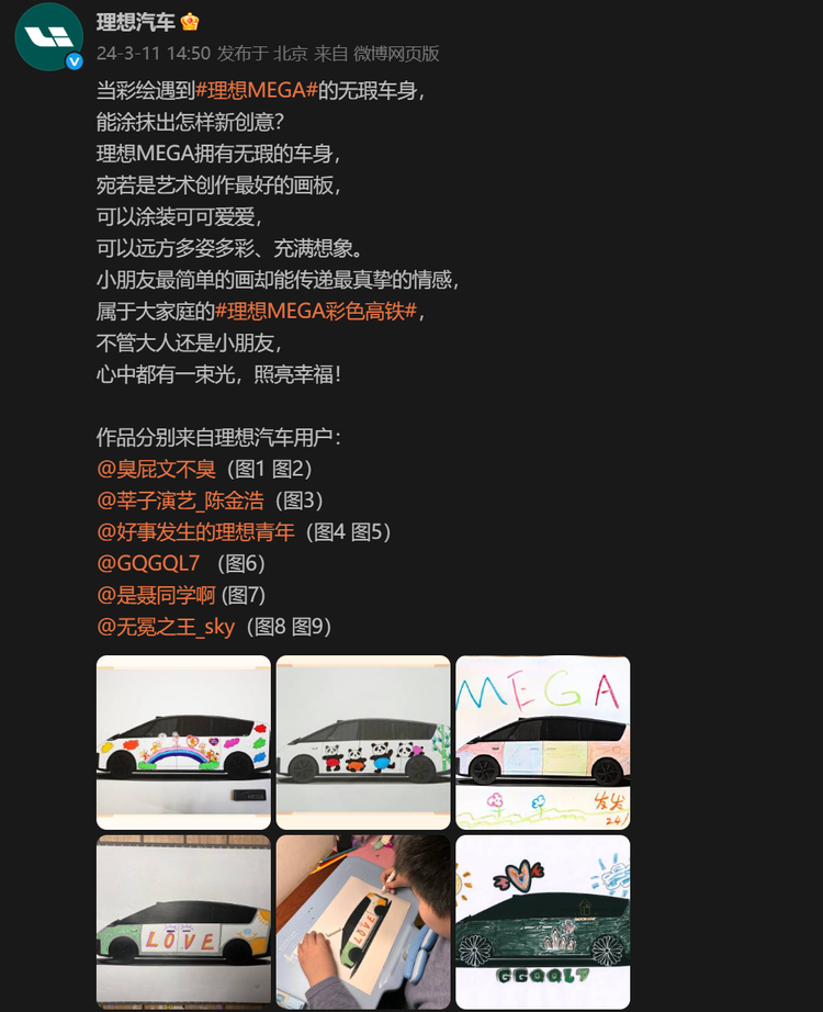 理想在 2024 年 MEGA 上市初期遭遇挑战后,做了三件事:一件是调整步伐,稳住 L 系列基本盘;一件是 MEGA 产品团队深入一线门店调研用户需求;一件则是发起 MEGA 车身涂装活动。