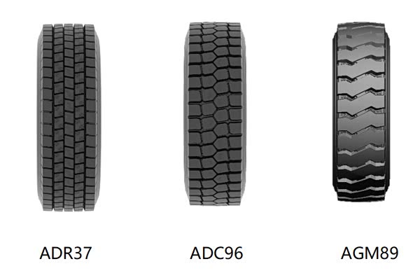 针对电动牵引车,12R22.5规格的ADR37、ADC96、AGM89三款花纹各具特色,分别适用于不同运距和路况条件。针对电动自卸车,12.00R20规格的ADC96、AGM83、AGM80同样采用高强度胎体,全新橡胶配方提升抗刺扎能力,显著改善频繁启停工况下的轮胎里程表现。