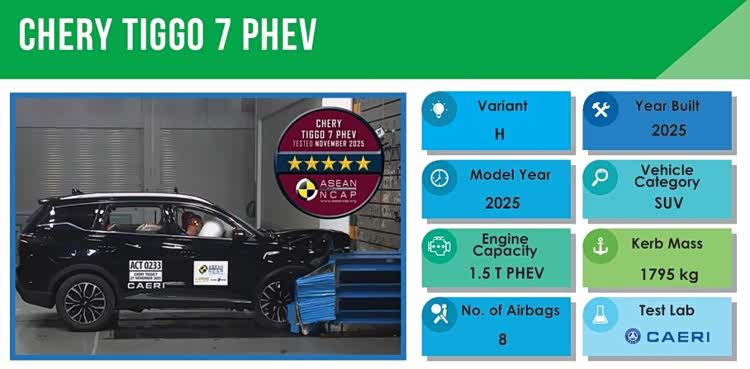 图为瑞虎7 PHEV获得东盟五星安全认证(ASEAN NCAP)