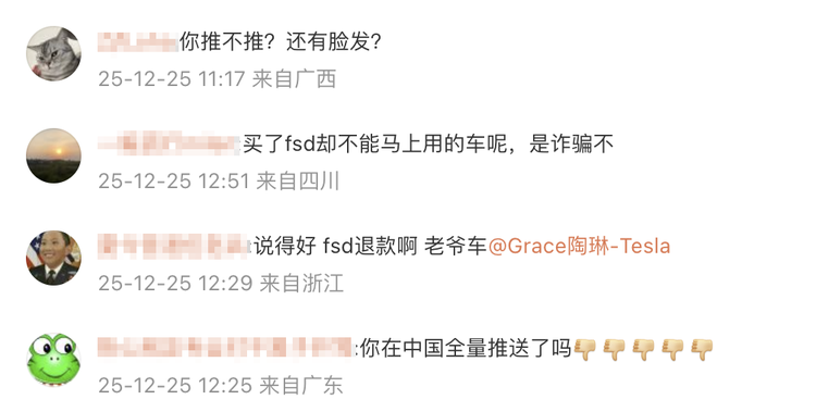 但是这条内容发出后,国内的车主们却完全不买账,因为特斯拉在北美等地的FSD自动化程度已经非常高了,但是在国内市场,至今没有真正铺开,之前上线的版本,在国内道路的出错率非常高,所以在评论中,很多车主就直言不讳了: