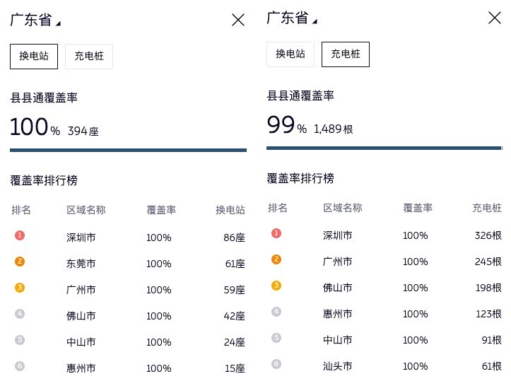 从官方披露的信息来看,电车通从仅能查询到蔚来本部及天津、广东、重庆、江苏等省市已率先达成「换电县县通」,其余区域的「加电县县通」推进细节,尚未完全对外公布。