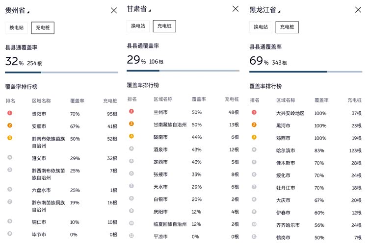 为此,电车通特地查询了官网的「县县通」专题数据。已实现换电全覆盖的广东省为例,其「充电县县通」的覆盖率为99%,尚未触及100%的终极目标。进一步查询后发现,贵州、甘肃、河北等省份的「县县通」覆盖率仍处于相对低位,距离全国全面达标尚有一段距离。